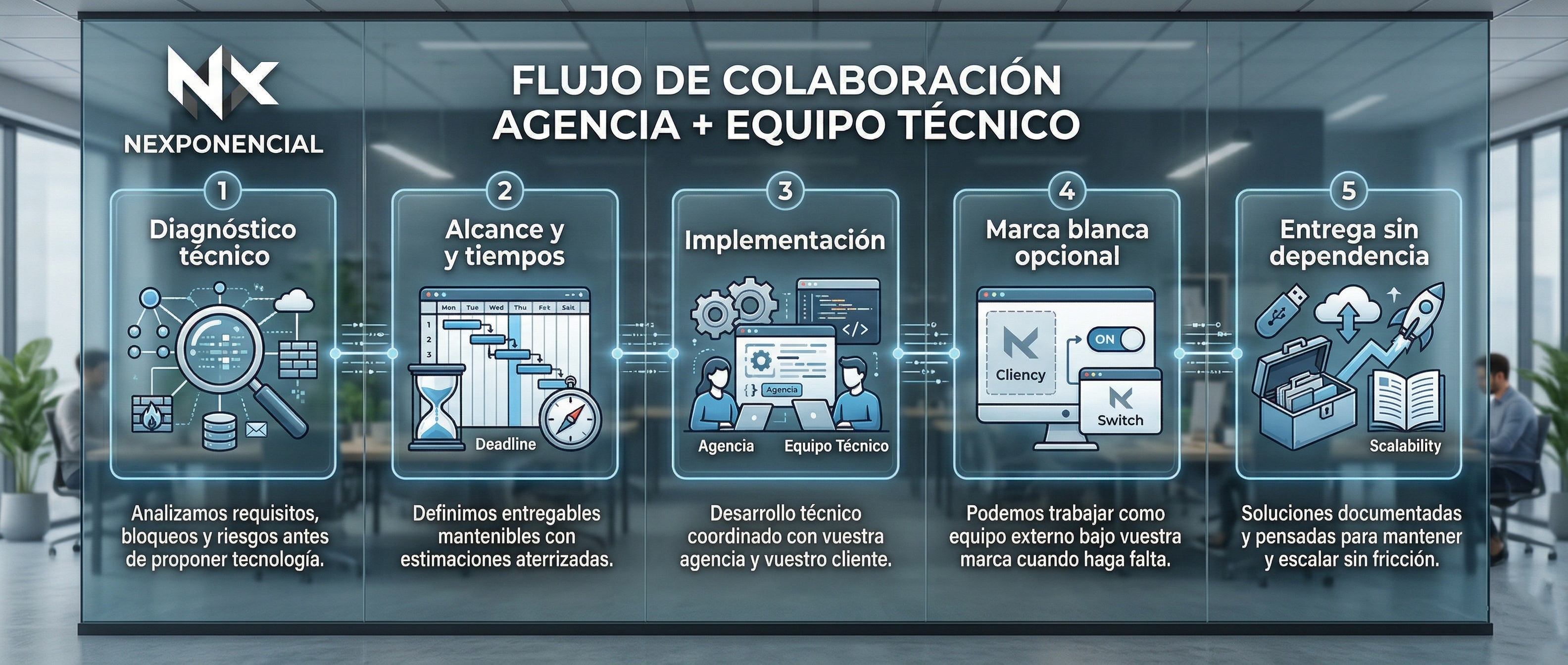 No buscamos hacer todo. Nos especializamos en la parte técnica que suele generar más fricción para que el proyecto salga adelante cuando se complica.