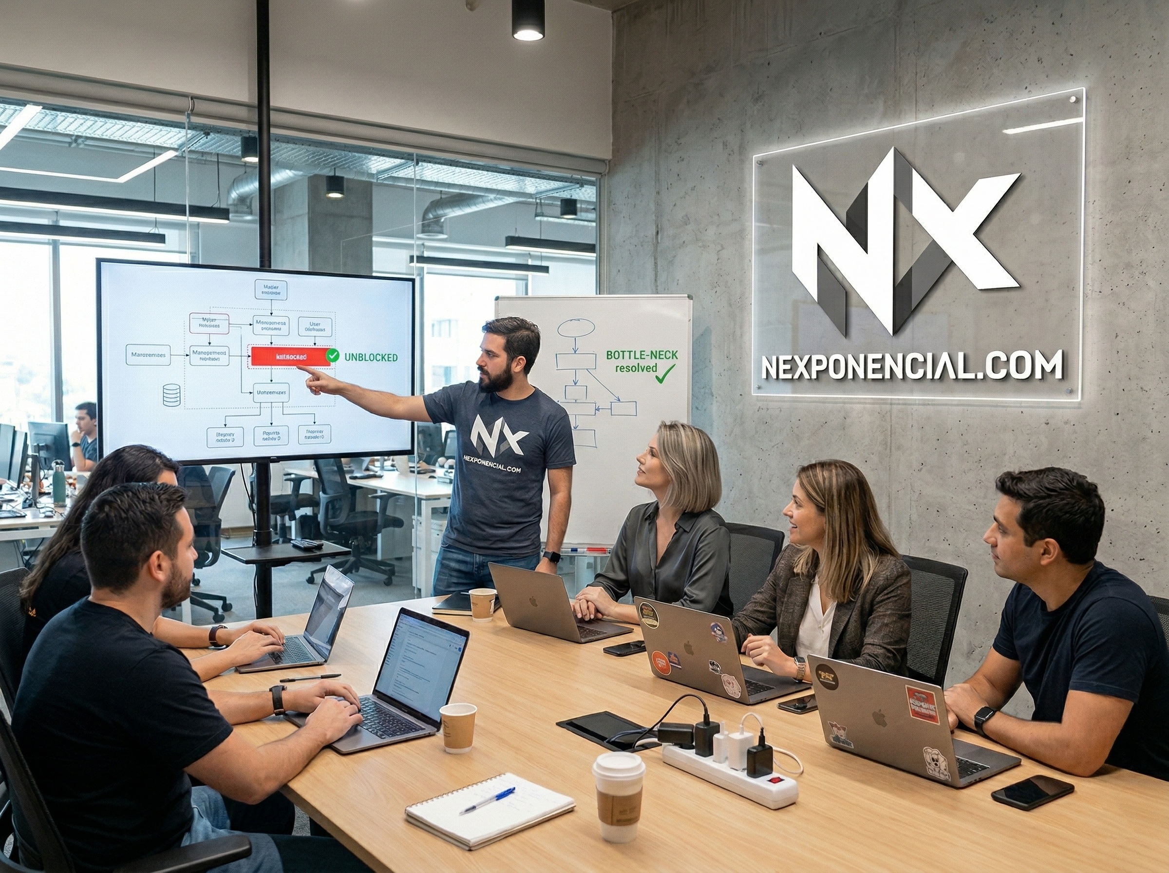 Nexponencial es un estudio técnico con estructura ligera. Trabajamos con apoyo técnico adicional según el tipo de proyecto o como equipo externo en marca blanca.